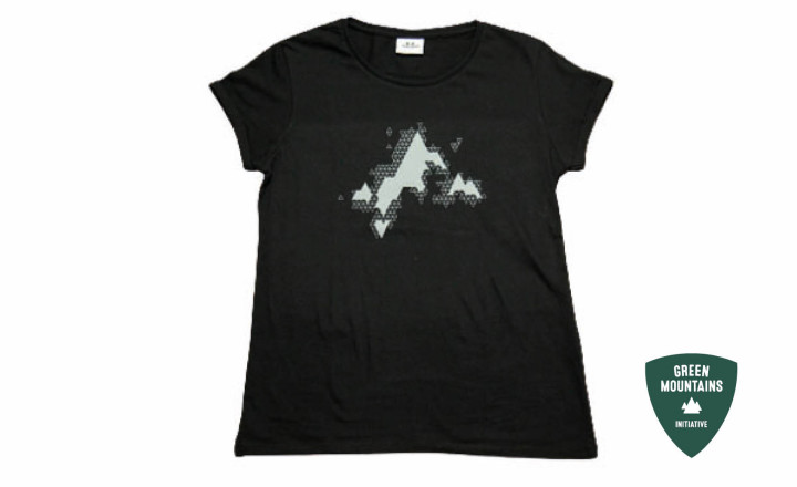 Schlichter Kapuzenpullover mit weißem Berg-Motiv.